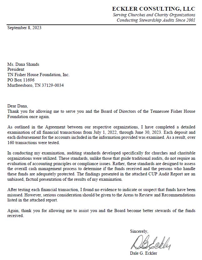 Our detailed examination into our financial transactions from July 1, 2022 through June 30, 2023 came back excellent. We share this to let our contributors know that we are great stewards of the funds we receive. We couldn’t do our mission without y’all!